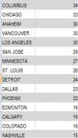 On March 1 the Columbus Blue Jackets were languishing in last place in the Western Conference with 13 points from 20 games. From that date through April 16, the Blue Jackets have earned the most points in the Western Conference, climbing from the cellar into ninth place to be even on points with the Detroit Red Wings for the final playoff spot and two points behind the sixth-place Minnesota Wild.